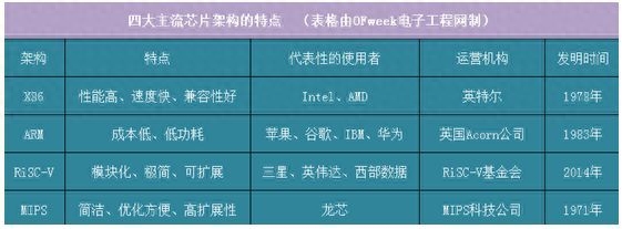 X86 主要是运用于 PC 中的CPU,巨头是英特尔公司。RiSC-V架构可以设计服务器CPU,家用电器CPU,工控CPU和用在比指头小的传感器中的CPU。MIPS架构广泛被使用在许多电子产品、网络设备、个人娱乐装置与商业装置上。