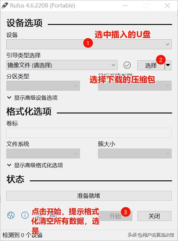 2、用rufuse写盘,之前下的压缩包不需要解压,直接就行。这一步遇到了其余U盘在写入到100%后提示写入失败,可能会挑盘。