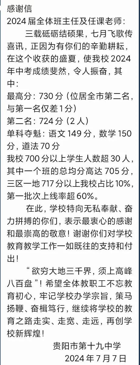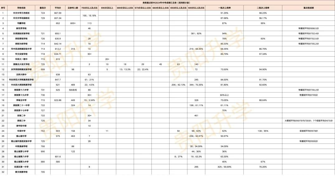 超全!2024年贵阳30余所重点初中中考成绩汇总!建议收藏