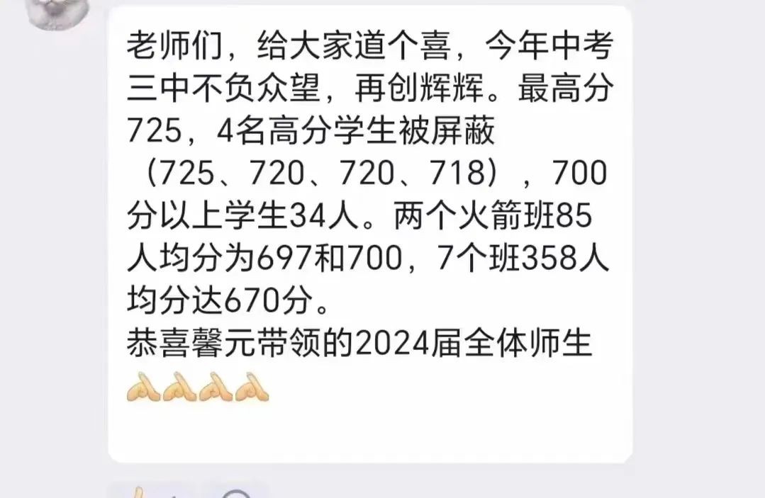 招生群家长分享:40个学生上了半年的高中课程,所以我们最高分715,690以上20+,全校平均分615+。