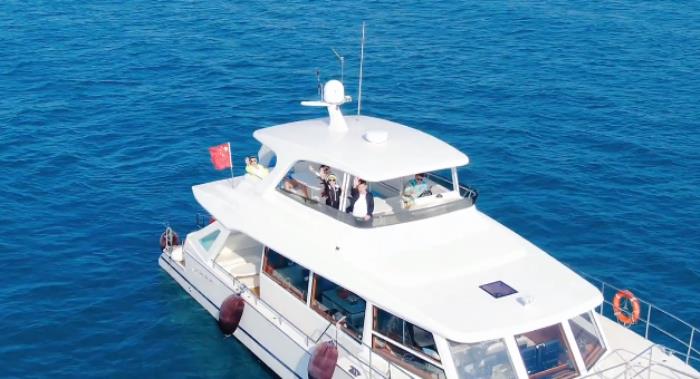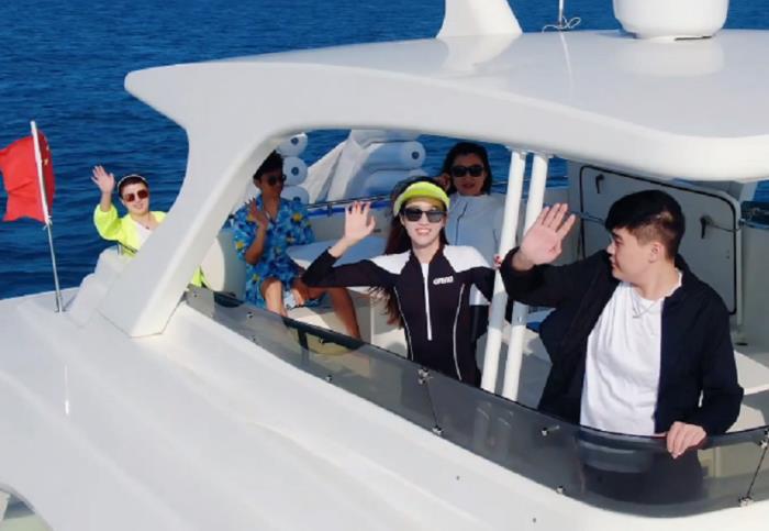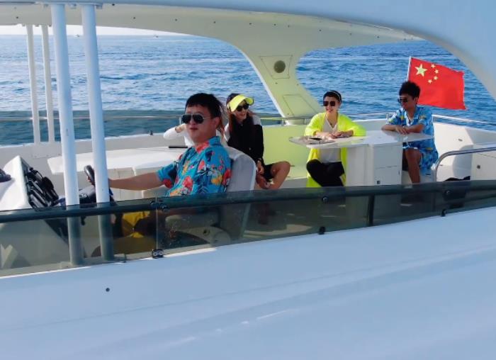 这个游艇上似乎只有7人左右,全都是闫学晶的亲人,看得出来这是一次“家庭游”。