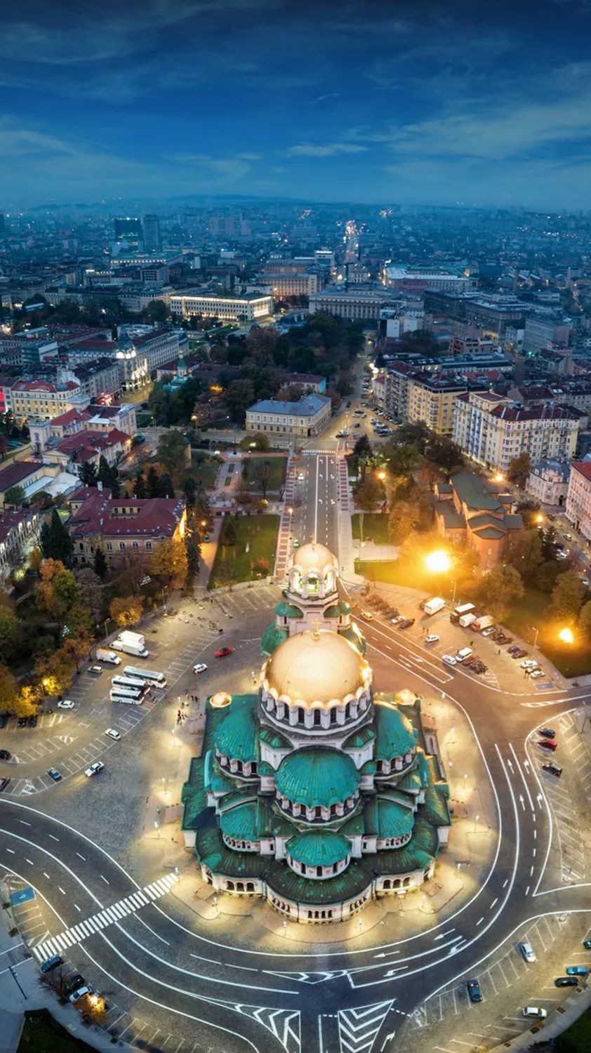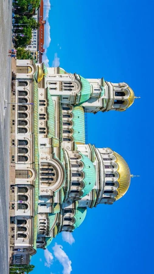 亚历山大·涅夫斯基大教堂属于新拜占庭式建筑同时也融合了保加利亚传统建筑风格教堂整体宏伟壮观是索菲亚的象征之一教堂呈巴西利卡布局中央有一个高大的圆顶镀金圆顶高达45米,钟塔高达53米从索菲亚市各处均可望到这座教堂的镀金大圆顶