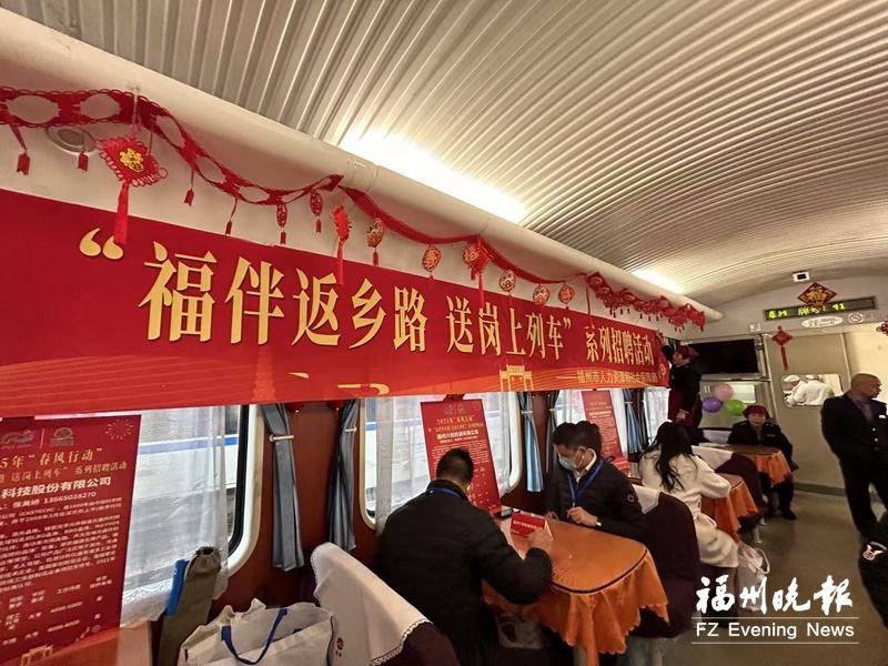 春运期间,“福伴返乡路 送岗上列车”活动连续在列车上举办了5场招聘活动,组织人员向福州开往贵州、重庆、成都等中西部地区的列车上的返乡务工人员发放数千份寻工地图、春风卡等。
