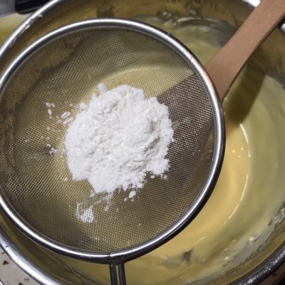 7、淀粉过筛倒入奶酪蛋液中