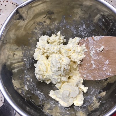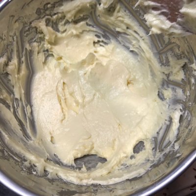 3、奶酪在室温下软化,用刮刀拌开
