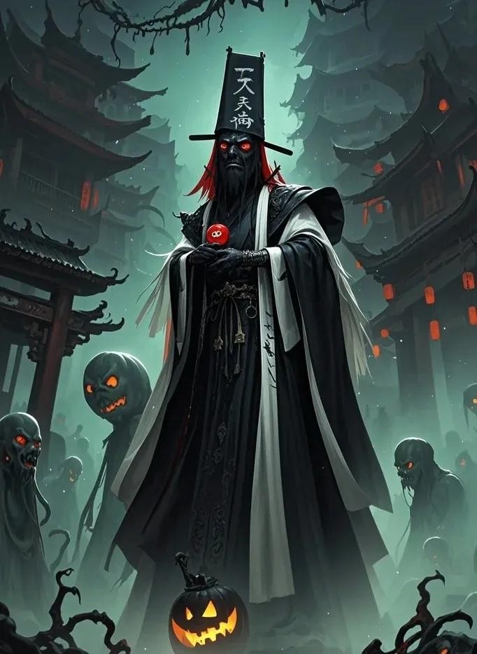 4. **黑白无常**:黑白无常,又称无常鬼,是地府的使者,负责在阳间与阴间之间穿梭,捕捉寿终正寝或意外死亡的灵魂,引导它们前往地府。虽然只有黑白两位,但他们的活动范围广泛,几乎涉及到每一个死亡事件。
