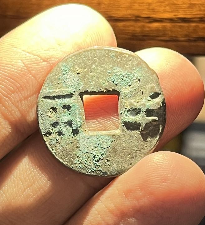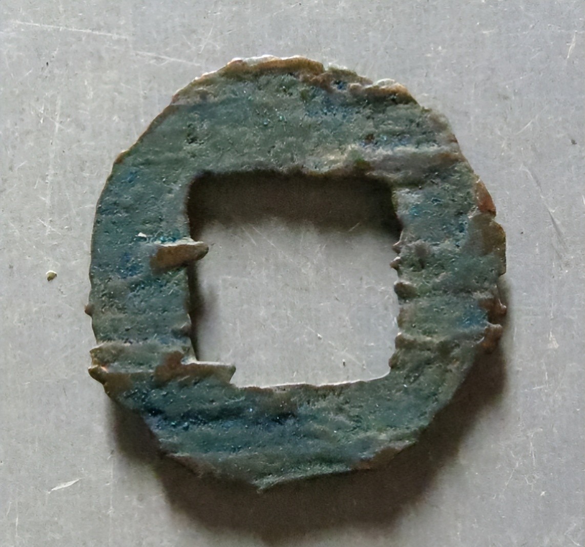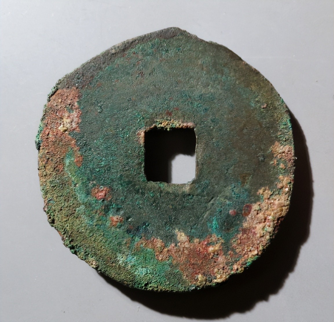 特点:新铸的四铢半两,有外郭,亦有内外郭。