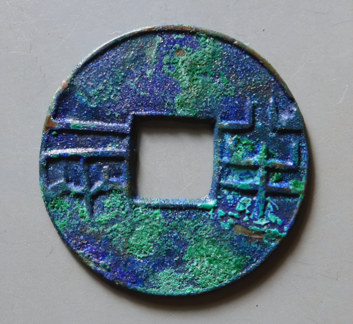 特点:仿秦半两书体,略浅,体大肉薄、背平无文,钱文书体扁平,已经有隶书的趋向,钱直径2.8-3.2厘米,重4.8-5.5克,为汉半两中最大者,其制作也较整齐。