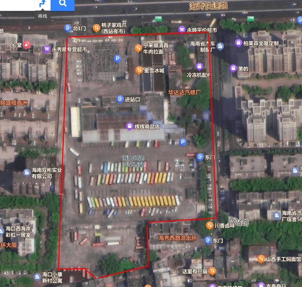 从上图可以看出,海口汽车西站就处在这片即将焕新区域的核心位置。2000年建成的海口汽车西站,又名省际总站,占地面积有33120.17㎡,换算一下,差不多有 50 亩地大。它曾作为海口三大汽车站之一,承载过无数人的出行记忆,是往来省内西部和进出岛客运的关键枢纽,在过去很长一段时间里,为海南的交通发挥了重要作用。