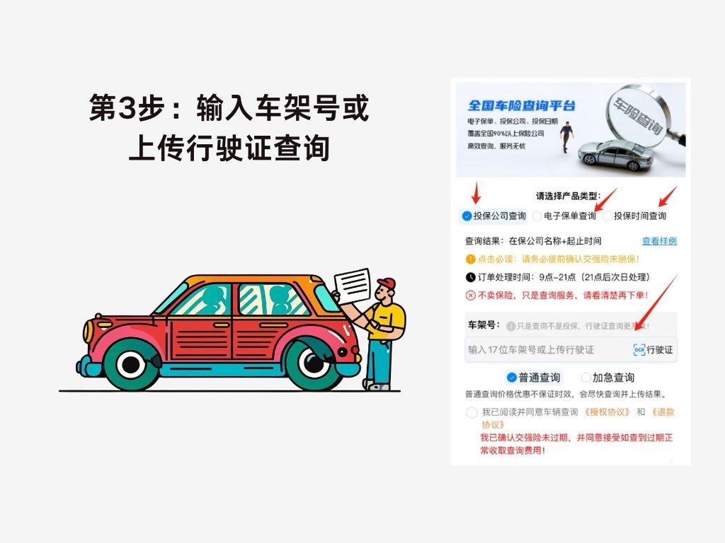 输入车架号或上传行驶证照片,即可查询车辆交强险的电子保单、投保时间、投保公司等详细信息。