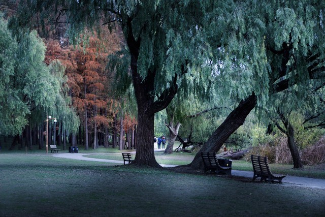 - 夏日余晖下的悠然时光:农村傍晚的树下乘凉