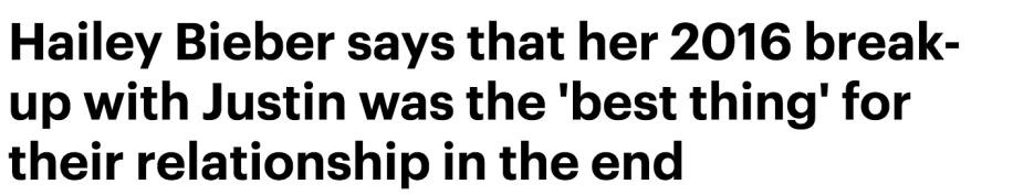 今年23岁的海莉称,4年前与比伯分手是正确的决定,是成就这段婚姻所发生的最好的事。