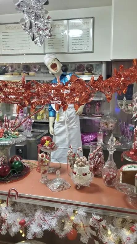 16.这个可怕的人体模型是这家餐厅圣诞展示的一部分,因为没有什么比一个服务员尖叫“holly jolly”更能撕掉你的脸了。