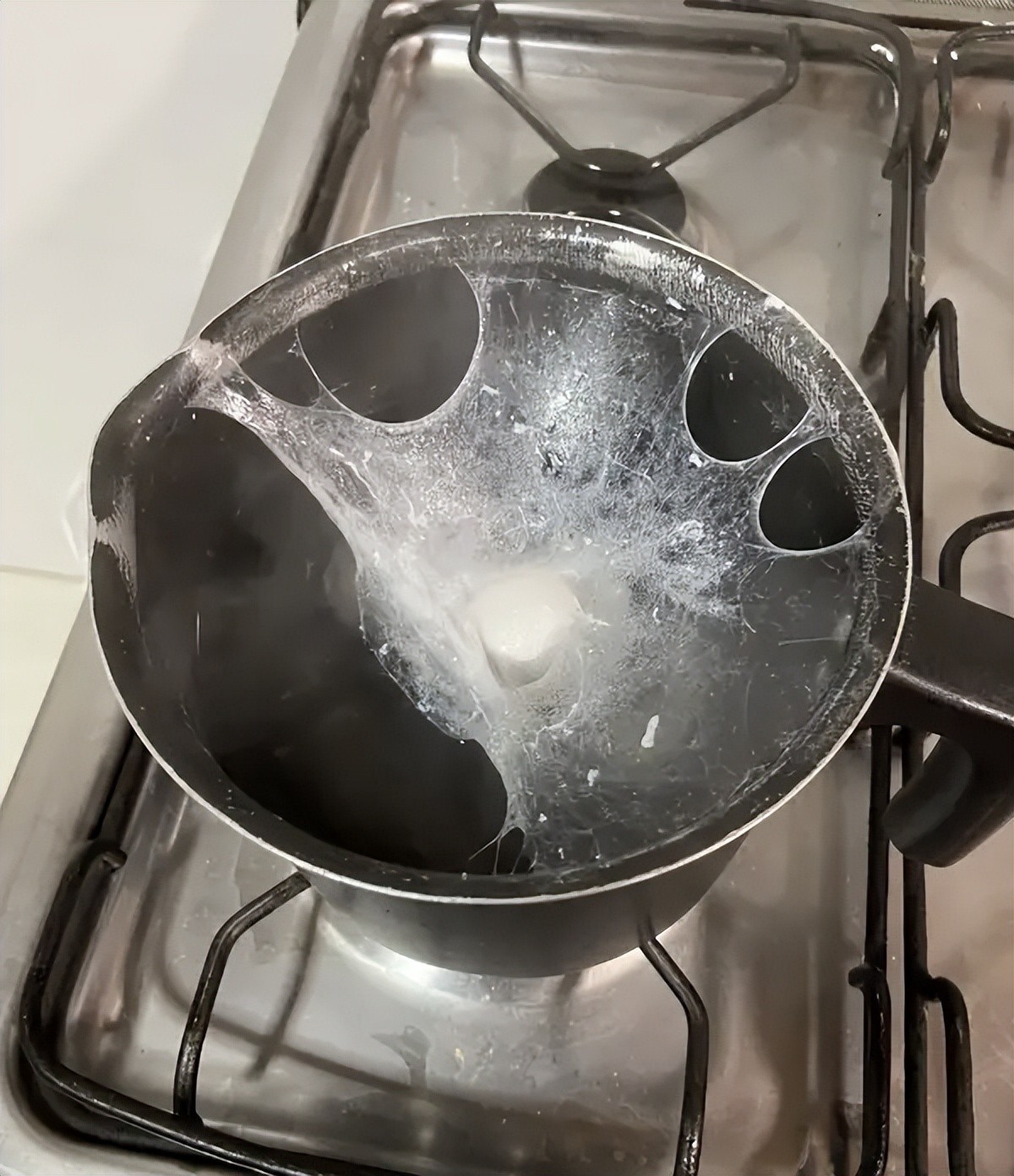 18.这位非常有才华的人试图煮鸡蛋,并意外地创造了这种粘稠的蜘蛛网混合物。
