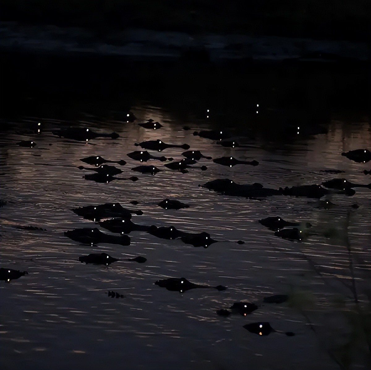 8.这张迷人的照片是夜晚沼泽上的星星倒影——哦,开玩笑,实际上只是一群鳄鱼。