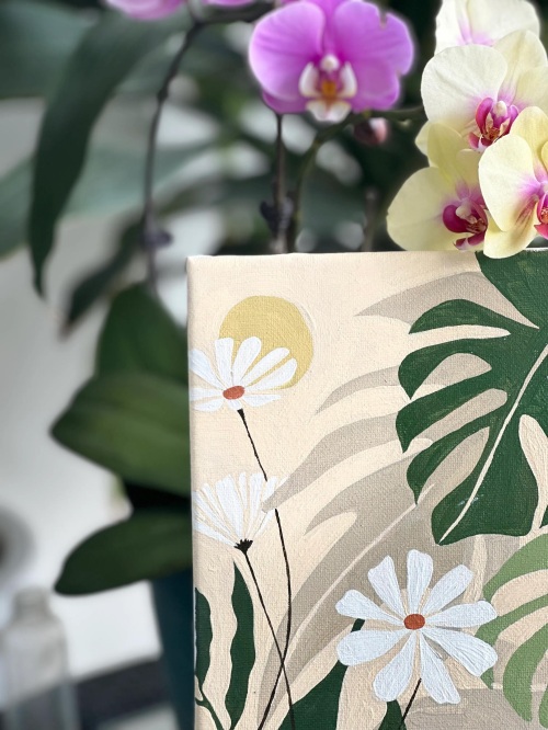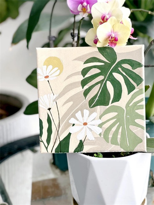 春天来了,一起画一幅丙烯装饰画吧,把春天摆在家里,超级简单,容易上手。