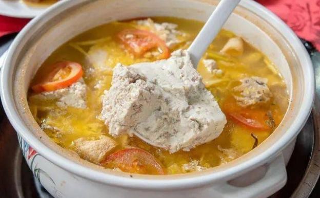 酸汤的食用历史悠久,最初的酸汤是用酿酒后的尾酒调制的,后改用热米汤经自然发酵及其他许多做法。因其制作方法简单、美味可口、食后开胃、味美汤鲜,现已延伸到酸汤鸡、酸汤鸭等。