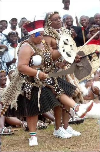 现代的祖鲁人在融入现代生活之余,仍然保有一定程度的昔日传统。祖鲁人穿着多种服饰,包括传统祭典或庆典用的礼服,以及日常的现代西方服装。此外,女人依其单身、订婚或已婚的身份,有不同的穿着。未婚的女人有资格展现她的身体为傲,不必遮羞,因此身上只穿用草或串珠等珠饰的短裙。订了婚的女人可以把传统的短发留长,但会用一块装饰布遮盖胸部,表示对未来夫家的尊重,也代表她名花有主了。已婚的妇女则包裹全身,暗示其他男人别碰。
