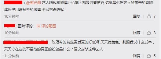 对此,有网友称,艺人陈冠希微博评论下有大量不堪入目的图片,这是劣迹艺人所带来的影响,建议停用陈冠希的微博,全网封杀。