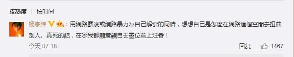 与陈冠希是好友的杨宗纬,还公开力挺,称这种暴露隐私的行径十分可恶,如果主播真死的话,会亲自去上香。