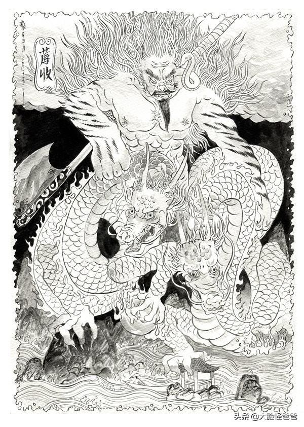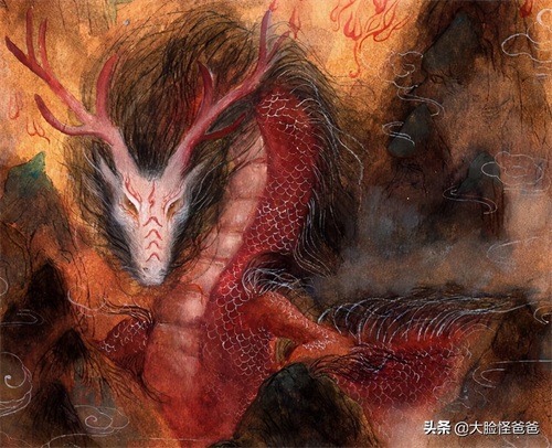 烛龙是上古神话传说中钟山的山神,他身长千里,人面蛇身通体赤红,竖立生长的眼睛闭上之后,就在头部的正中合成一条缝,居住在章尾山。