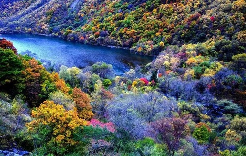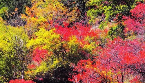 每到深秋,层林尽染,在纯净的蓝天底下,“上帝弄撒了调色板”,紫红、粉红、橘红、金红、深黄、草绿、黄绿、棕红、褐色等五颜六色,撒满八十里山谷。