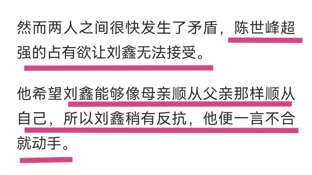 有知情人透露,陈世峰从小学就不太爱说话,看起来很老实和内向。青春期的男孩比较调皮,但是他喜欢沉默。陈世峰虽然不调皮,不过他的成绩很差。就连当年上高中,也让父母花了不少钱,通过关系才送他到盐池上的学。他上了大学以后,也曾经交往过女朋友。有人透露,他同样家暴过对方。和刘鑫在一起后,他依然是占有欲很强。