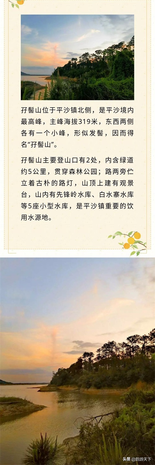 平沙镇,是珠海最西部的一个小镇,也是一个旅游小镇;以前的农民就是打渔种地,而如今,这里的农民在这片曾经荒芜的海滩做起了旅游,还玩起了高科技。如今,美丽的珠海平沙可谓如诗如画,她传颂着平沙光辉的历史,以及老一代知青艰苦奋斗的唯美赞歌:郁郁葱葱的孖髻山、端庄秀气的如意桥、瓜果飘香的台创园,还有异国情调的海泉湾等等,无不使得平沙更加诱人,更具魅力!