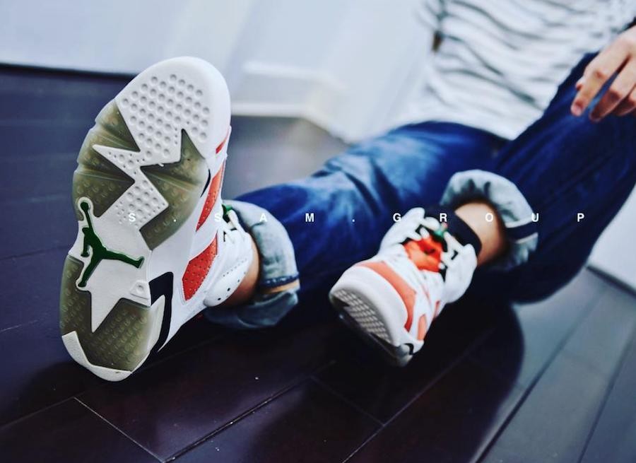 Air Jordan 6 的佳得乐款即将在 10 月上架,而近日其已在佳得乐的各个电视广告中频频亮相。白色与橙色相配形成鞋款的主色调,并加以绿色的鞋带扣与飞人 Logo 进行点缀。鞋舌内侧更有 “IF I COULB BE _” 的橙色刺绣,在鞋垫与鞋带扣处也有佳得乐的闪电 Logo ,但是否是正式官方合作我们还不得而知,但 10 月的发售日期和 $190 美元的发售价已经确定,更多消息请关注有货小编的持续报道。