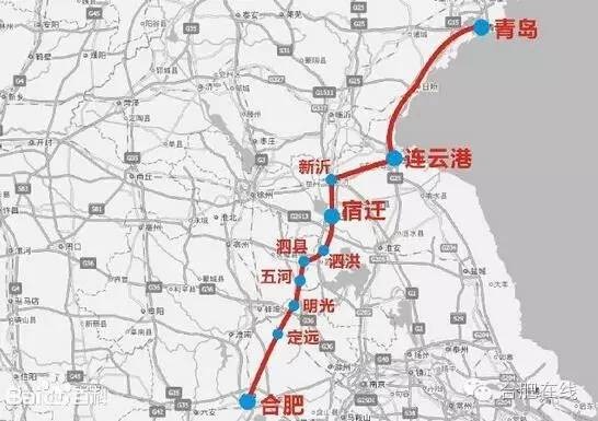 合肥至新沂段接入徐连高铁,再从连云港连接青(岛)日(照)连高铁。