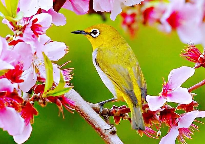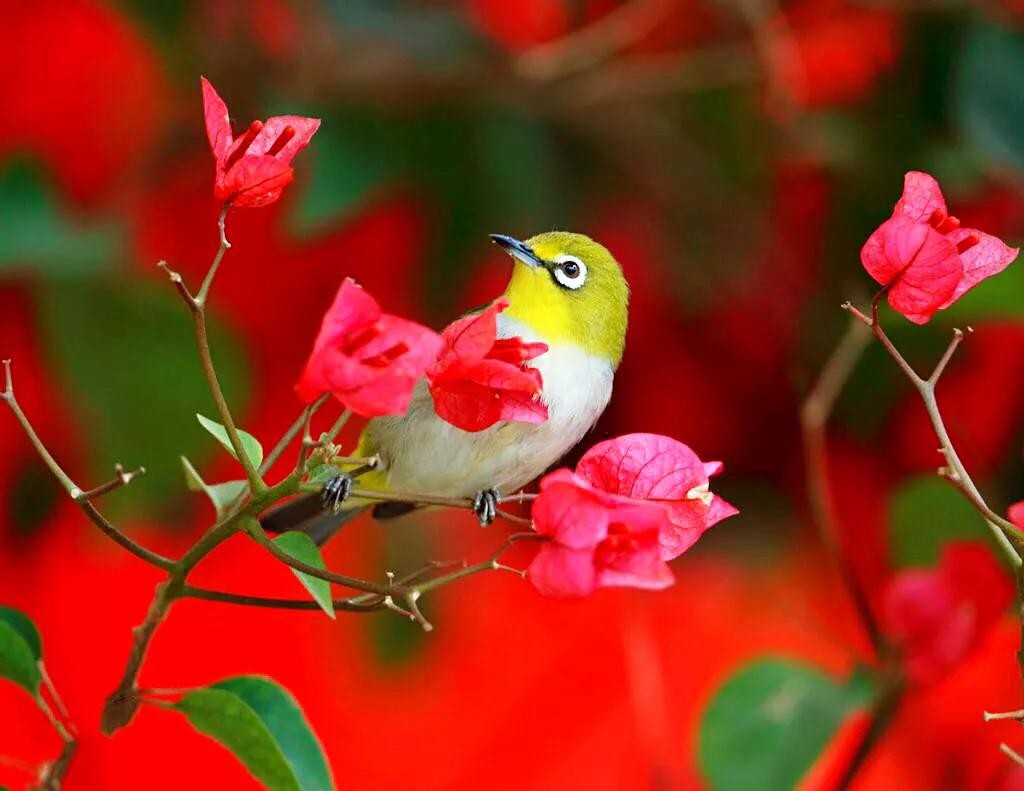 绣眼鸟俗称:绣眼儿、白眼圈、相思仔等。是雀形目、绣眼鸟科红胁绣眼、黄腹绣眼、暗绿绣眼、灰腹绣眼等97种小型鸟类的统称。因其眼圈被一些明显的白色绒状短羽环绕,形成鲜明的白眼圈而得名"绣眼"。主要分布自亚洲南部至大洋洲和非洲。