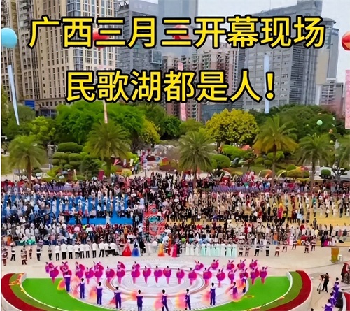 3月31号,是农历三月三这时间,广西各地举办盛大的传统节日庆祝活动。南宁分会场人潮涌动,歌舞欢腾,吸引了众多民众前来参与。知名演员靳东意外现身活动现场。