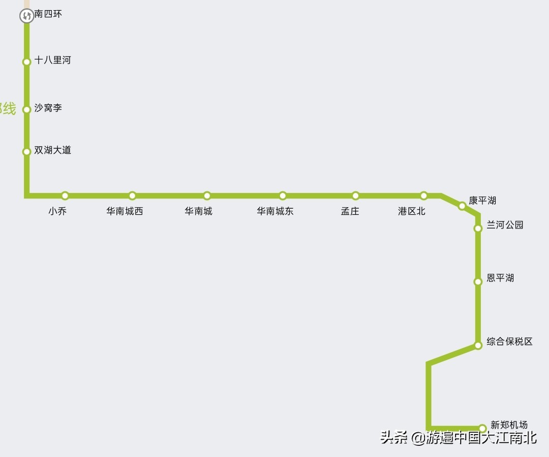 郑州地铁城郊线(Zhengzhou Metro Chengjiao Line),是郑州第三条建成运营的地铁线路,该线于2017年1月12日开通运营一期工程(南四环站至新郑机场站段),标志色为抹茶绿,现暂由郑州地铁2号线大交路贯通运营。郑州地铁城郊线列车辆全长120米,宽2.8米,采用最新设计的转向架,加装了抗侧滚功能,转向架设计时速可达120千米/小时,整车设计最高时速100千米/小时。[11]