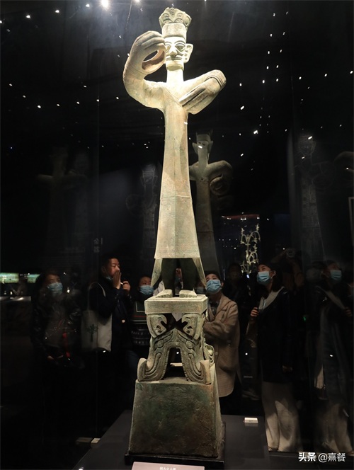 ·青铜大立人,最显眼的位置,是世界已知最高铜像,形象很卡通,颠覆以往文物认知,手里到底在握着什么,至今未知!馆内有具体讲解,认真看看,顿感神秘