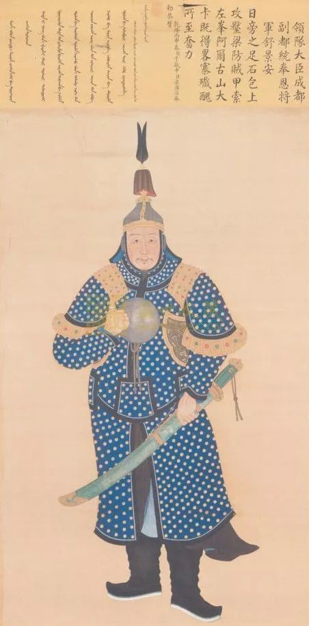 天津博物馆所藏第二幅紫光阁乾隆功臣像为《成都副督统奉恩将军舒景安像》。根据《平定两金川方略》记载,舒景安在后50人中名列第二。这第52名和阿玉锡的前50名是大有区别的。