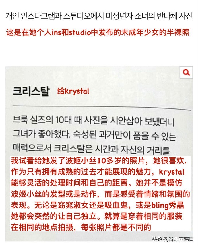 例如,闵熙珍曾在个人SNS平台中发布未成年少男少女的半裸照,以及她很欣赏出演过美国女演员波姬小丝(演过雏妓)。
