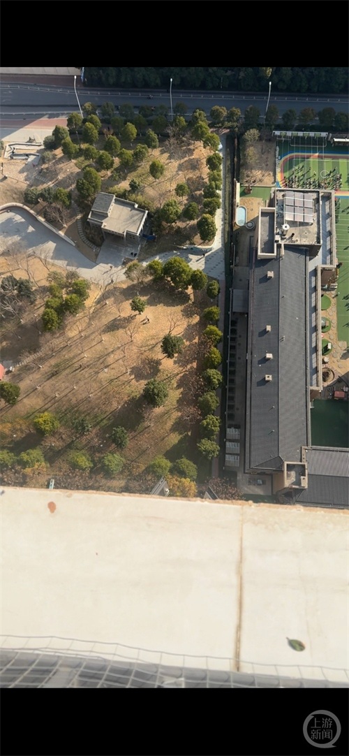 从张女士家的阳台往下望,有百余米的高度。受访者供图