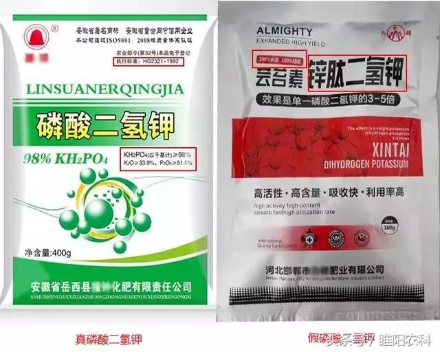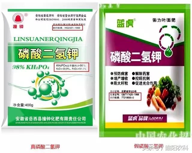 真假磷酸二氢钾包装上的区别
