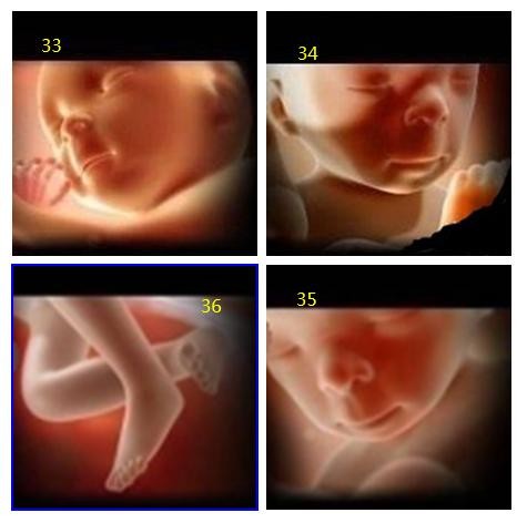 第35周:胎儿的运动从“踢打”转变为“摇摆、滚动”。
