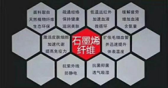 但人们可以买到其他可种各样的石墨烯产品。比如新三板上市公司圣泉集团已经在市场推出了石墨烯袜子和内衣。根据该公司的宣传,他们在产品中添加了生物质石墨烯“内暖”纤维,这是一种全新的智能多功能复合纤维,“具有激活免疫细胞、防护紫外线、改善微循环、抗菌抑菌、增温增阳等特性,还可以除臭”。根据该公司的宣传介绍,他们将植物秸秆碳化提取石墨烯,利用石墨烯的超导性作为生产衣服的原料。他们计划还将推出智能文胸,通过内置感应器测量女性胸部温度细微变化,有效预防肿瘤及乳腺癌,还计划应用到军服上——目前,这些所谓的石墨烯产品价格不菲,一双袜子的价格超过50元,一条内裤的价格接近300元,一条石墨烯腰带的价格需近600元,而发热服则卖到1700元以上。