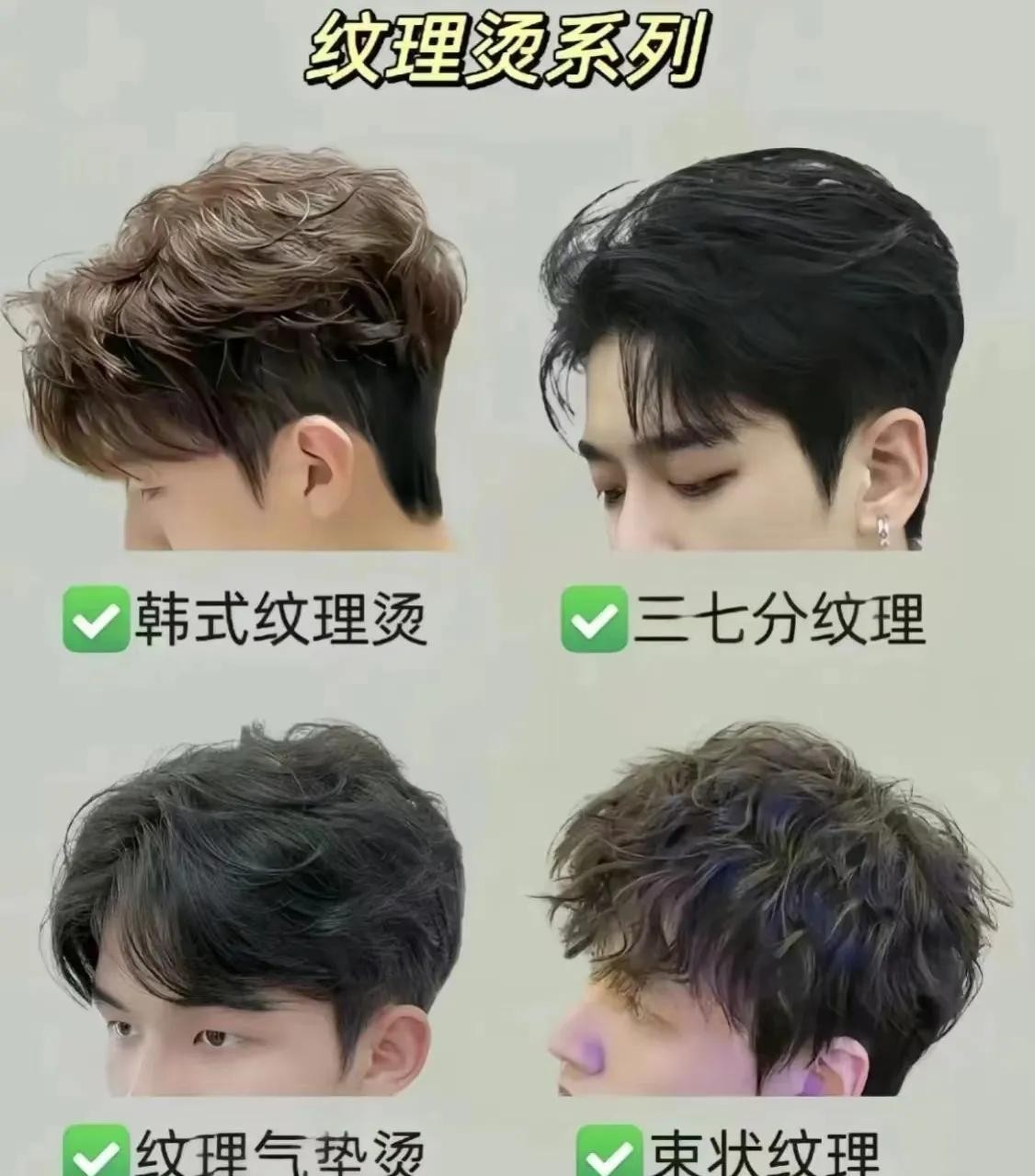 纹理烫的魅力在于其低调而不失精致。打理时,只需在头发半干状态下,取适量发蜡均匀涂抹于掌心,轻轻抓揉头发,将纹理感进一步凸显,再喷上少量定型喷雾即可。无论是搭配休闲的T恤、牛仔裤,展现青春活力;还是身着衬衫、西裤,打造商务休闲风,纹理烫都能完美适配,为整体造型加分,让男生们看起来既干练又不失时尚感。