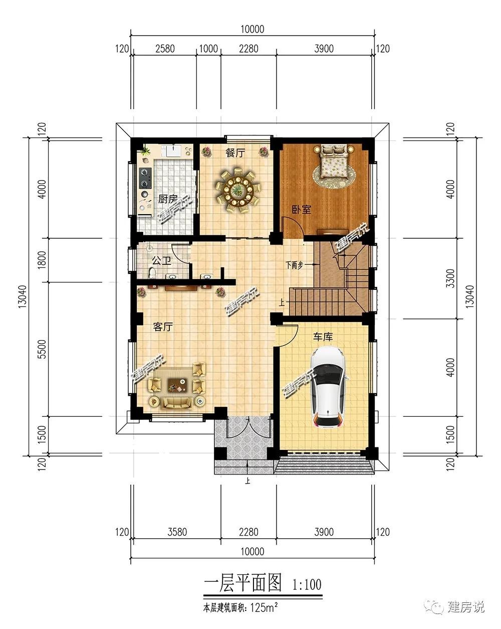 别墅图纸编号:JF9552、主体毛坯参考造价:40-47万、占地面积:125平方米、建筑面积:400平方米、开间10米,进深13.04米、框架结构,建筑高13.6米