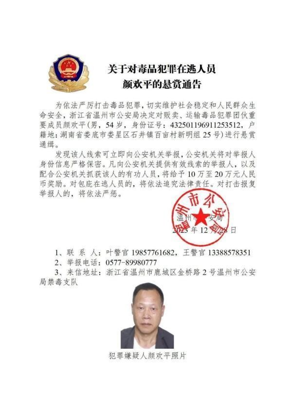 最高20万元!公安机关悬赏通缉10名重大涉毒逃犯,照片公布→