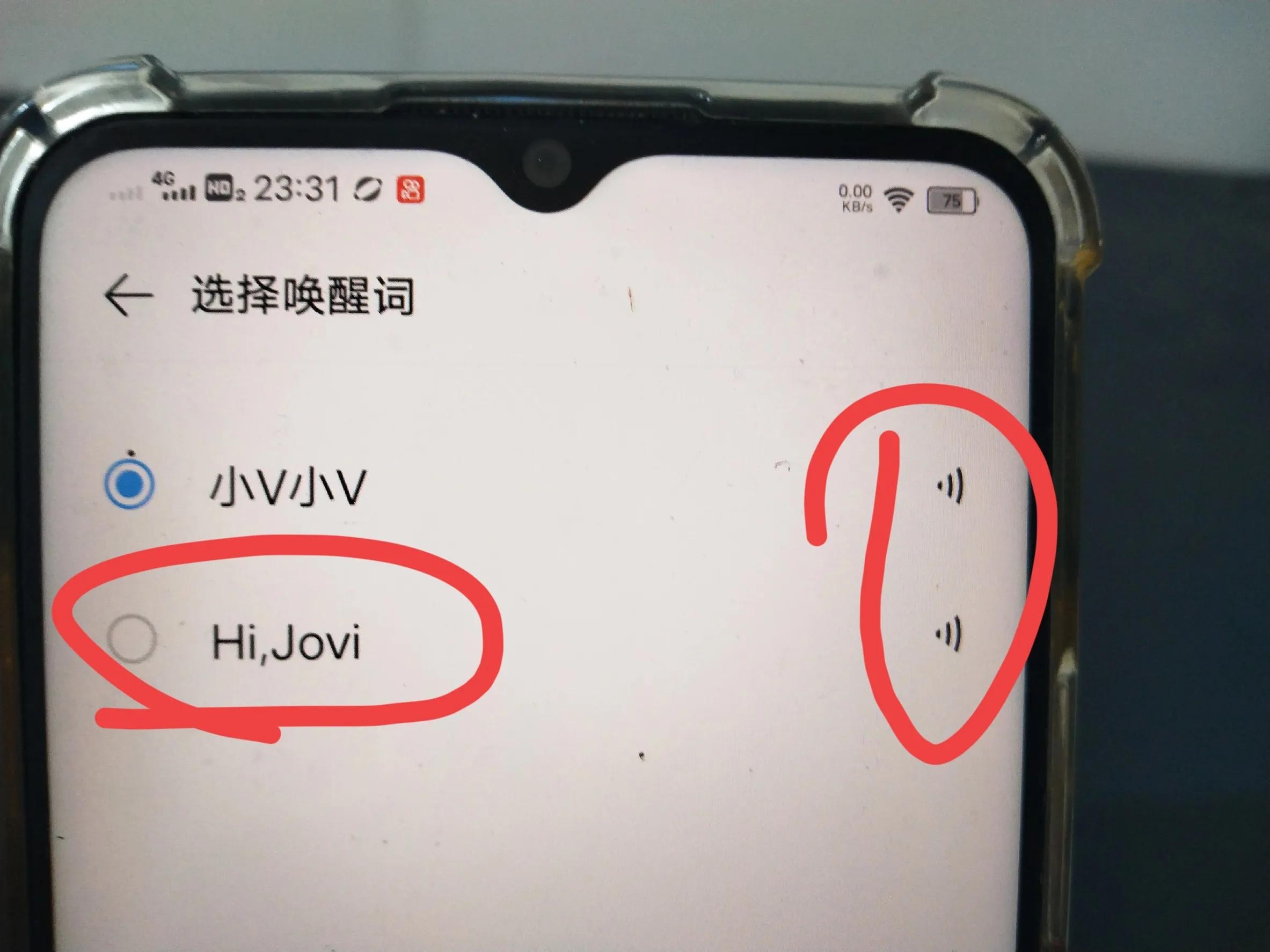 您可以设置成Hi,Jovi。如果不知道怎么读的,后面有个小喇叭(如上图所示)