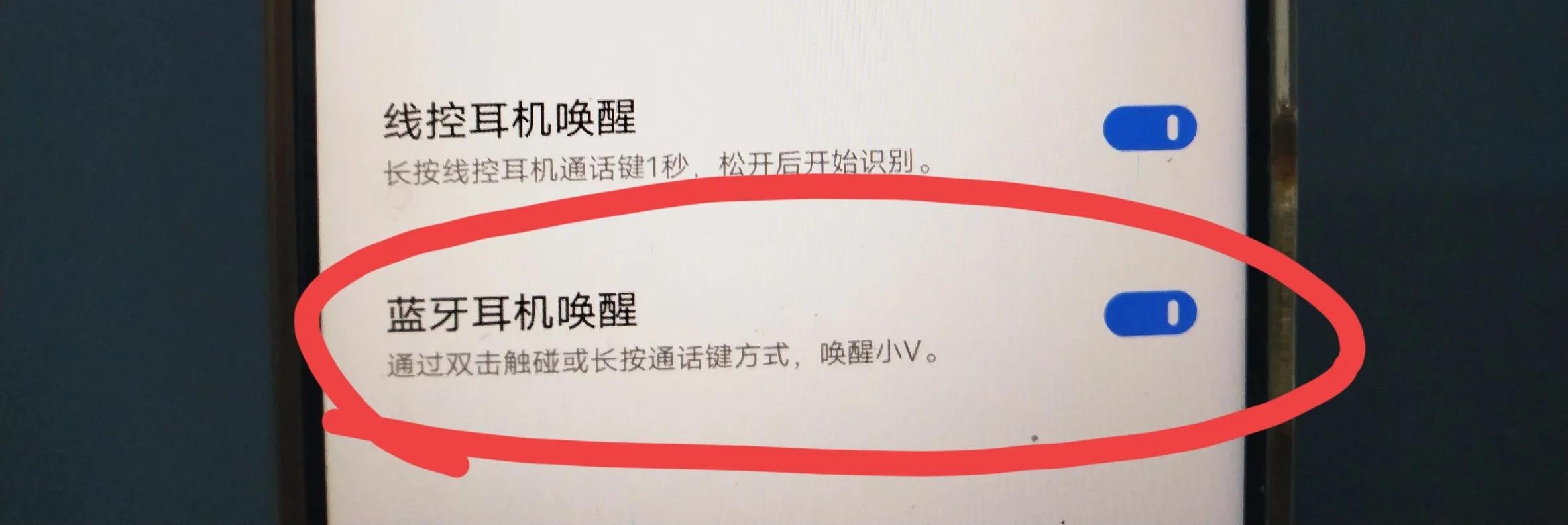 也可以设置为蓝牙耳机唤醒,通过双击触碰或长按通话键的方式唤醒小 V。(如上图所示)