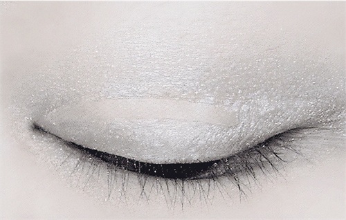 使用浅灰色眼影给眼皮进行打底,这里使用的产品是植村秀卡尔小姐眼影盘。