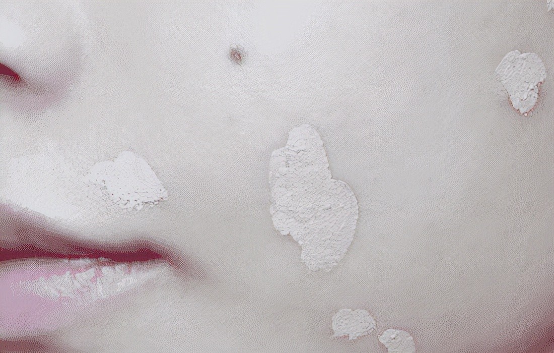 用深肤色遮瑕膏遮盖痘印和斑点,以点涂的方式,并用手指或者遮瑕刷拍开。