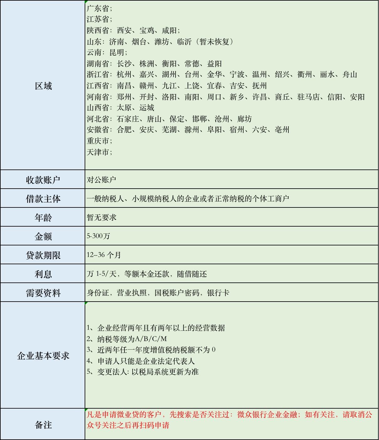 微业贷是专门面向小微企业的纯信用贷款,考虑企业避税特性,贷款申请对年交税金额、企业负债金额、法人/经营地变动情况无硬性限制。