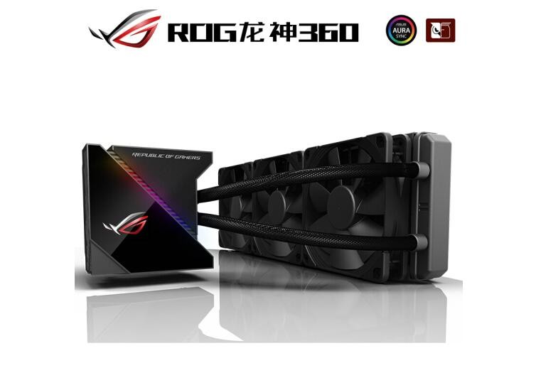 散热器也是ROG专属龙神一体式散热器,选择了360水冷,猫头鹰工业级冷排风扇,为超频保驾护航。自带1.77英寸全彩OLED屏幕,可显示CPU温度、电压等信息,也可以定制专属GIF动画图片,支持神光同步,精致、炫酷、高颜值,给整机灯效带来亮点。
