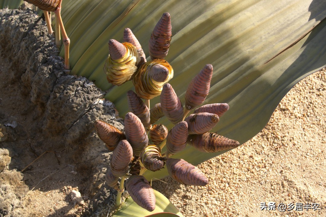 百岁叶具有两片极为长寿的叶子,野外植株的叶片通常会碎裂成许多条状物,让人无法看出他们原来是两片叶子。